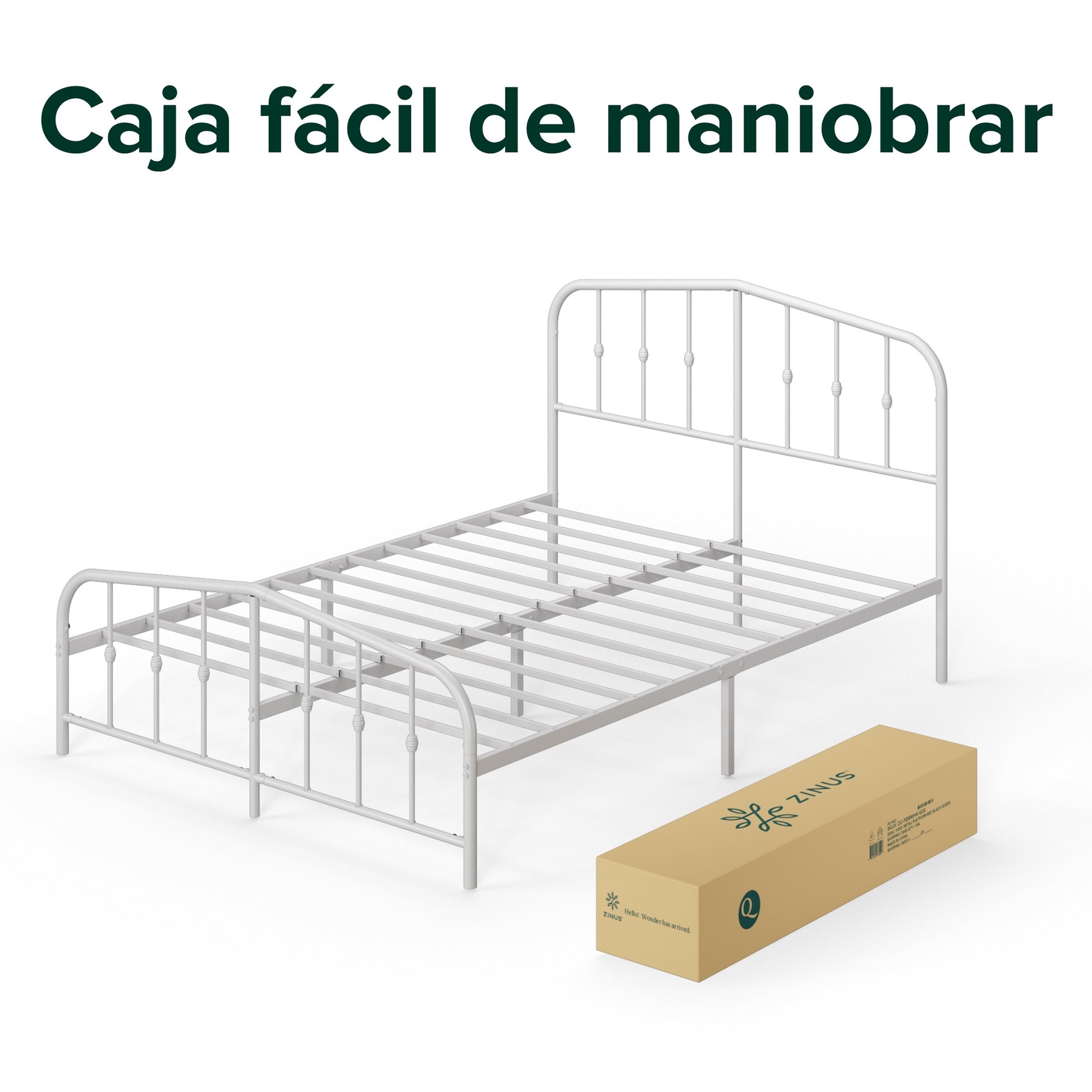 Base de Cama Zinus Heidi Blanca – Estilo Tradicional con Soporte Moderno