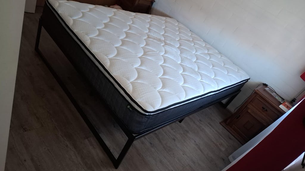 • COLCHÓN + BASE EN CAJA: Se entregan en caja para que sea fácil transportarlo a la pieza. El colchón se entrega comprimido en una caja, lo cual hace que sea sencillo de transportar hasta el dormitorio. Simplemente tendrás que desembalarlo y desenrollarlo, y la base viene con todas las herramientas necesarias para un armado rápido.