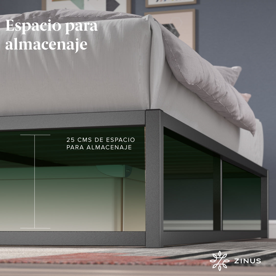 La base Joseph combina un diseño simple con una funcionalidad excepcional. Fabricada con un marco de acero grueso y listones de madera, está preparada para soportar colchones de espuma o resortes. Además, su espacio abierto debajo permite guardar cajas, ropa de cama, zapatos y más, haciendo de tu dormitorio un lugar más ordenado y eficiente. Incluye todas las herramientas e instrucciones para un ensamblado fácil en minutos.