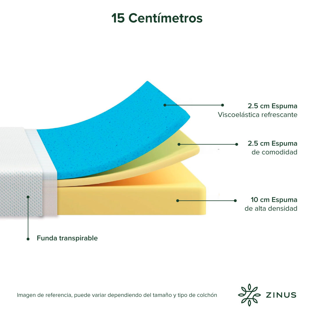 Medidas disponibles del Colchón Zinus Espuma y Fresco 15 cm