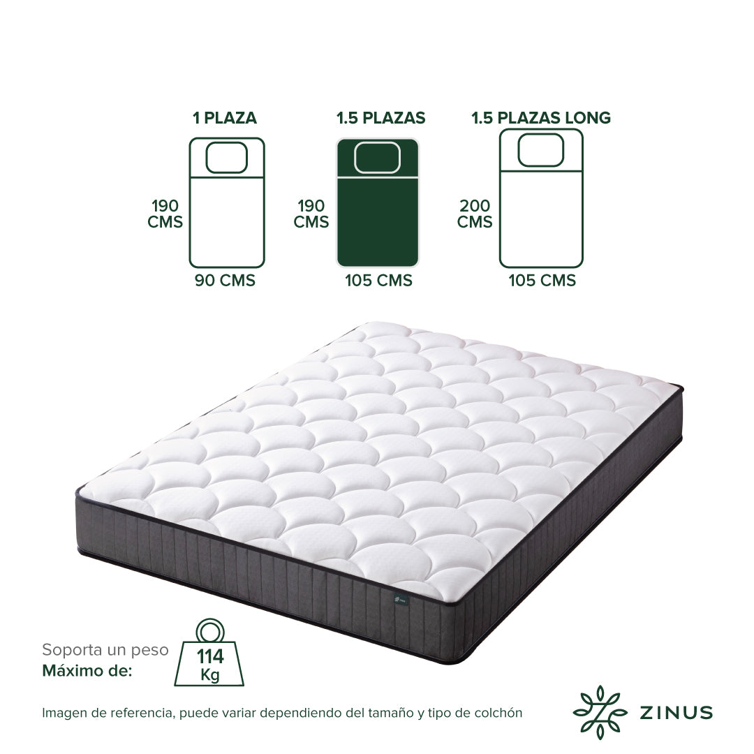 Medidas disponibles del Colchón Zinus Espuma y Resortes Pocket 20 cm