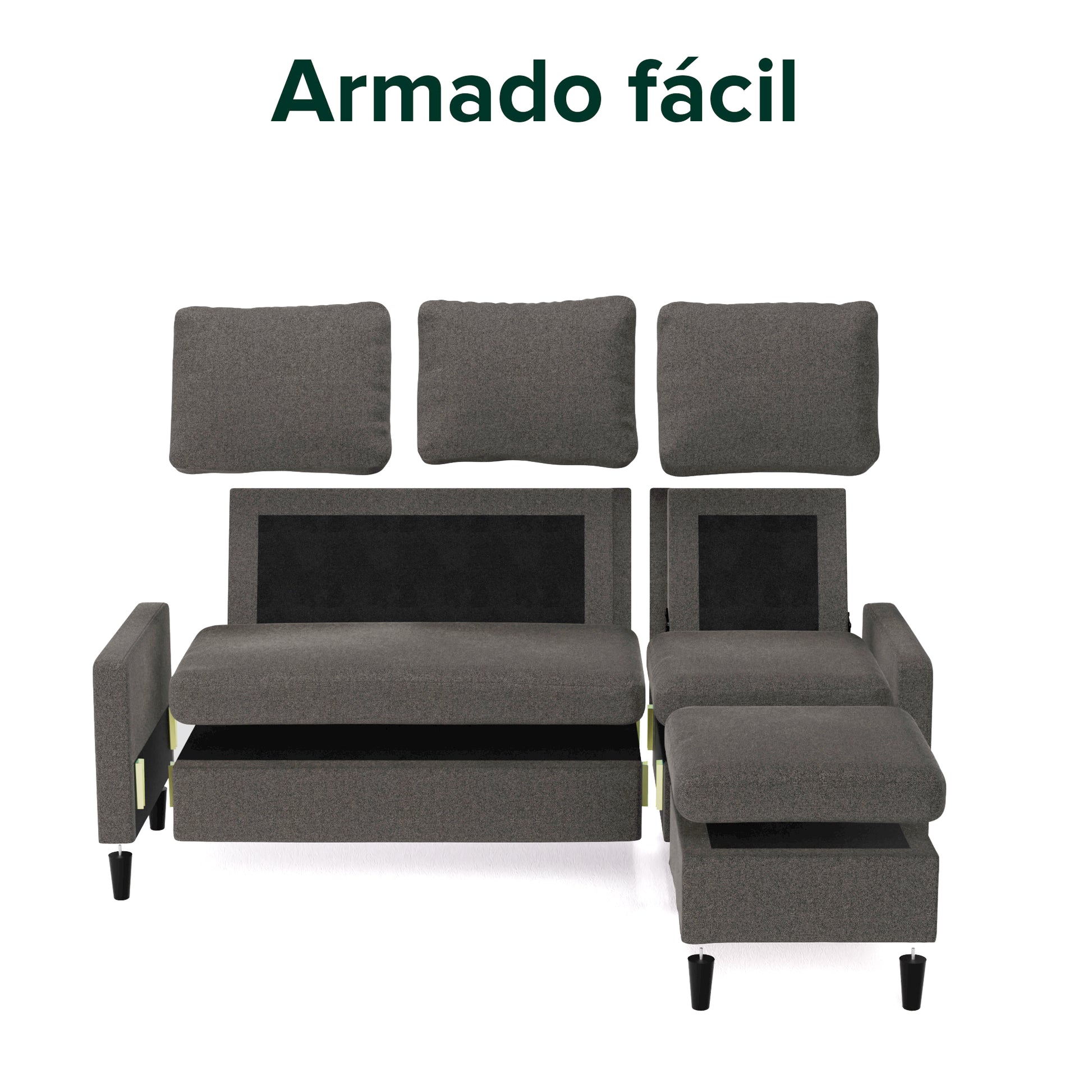 3 formas de armarlo: usa el puff solo o haz una chaise a la derecha o izquierda.