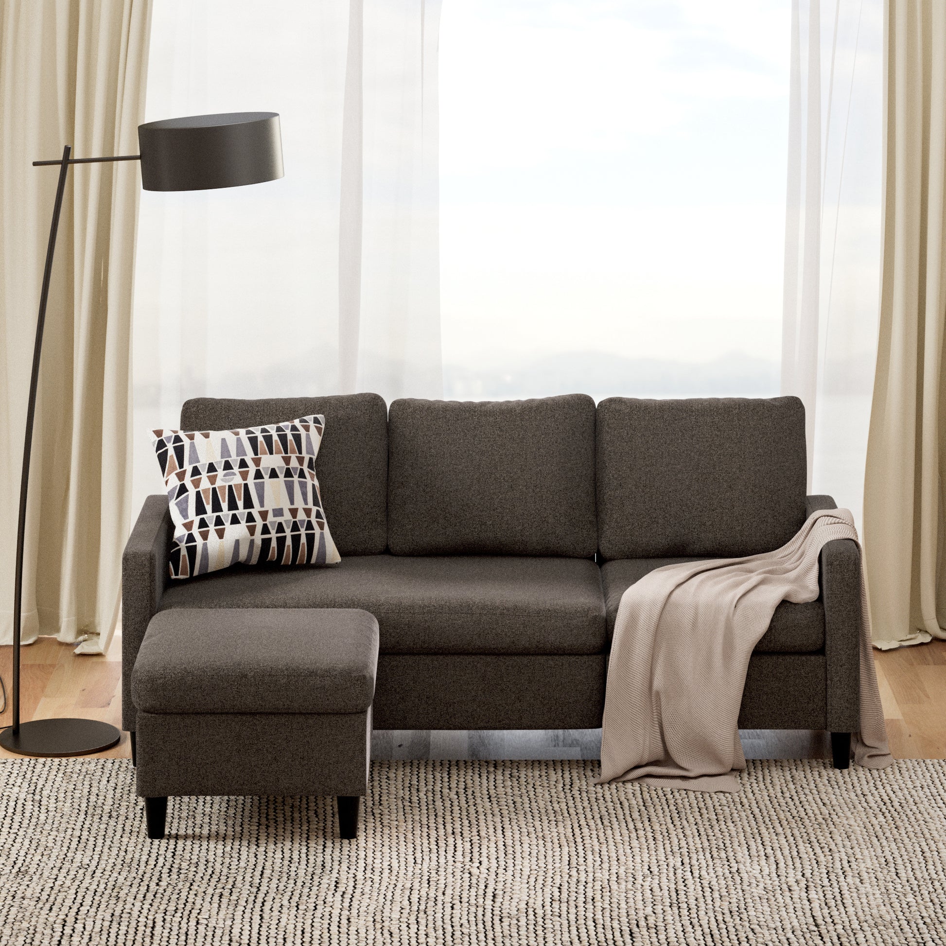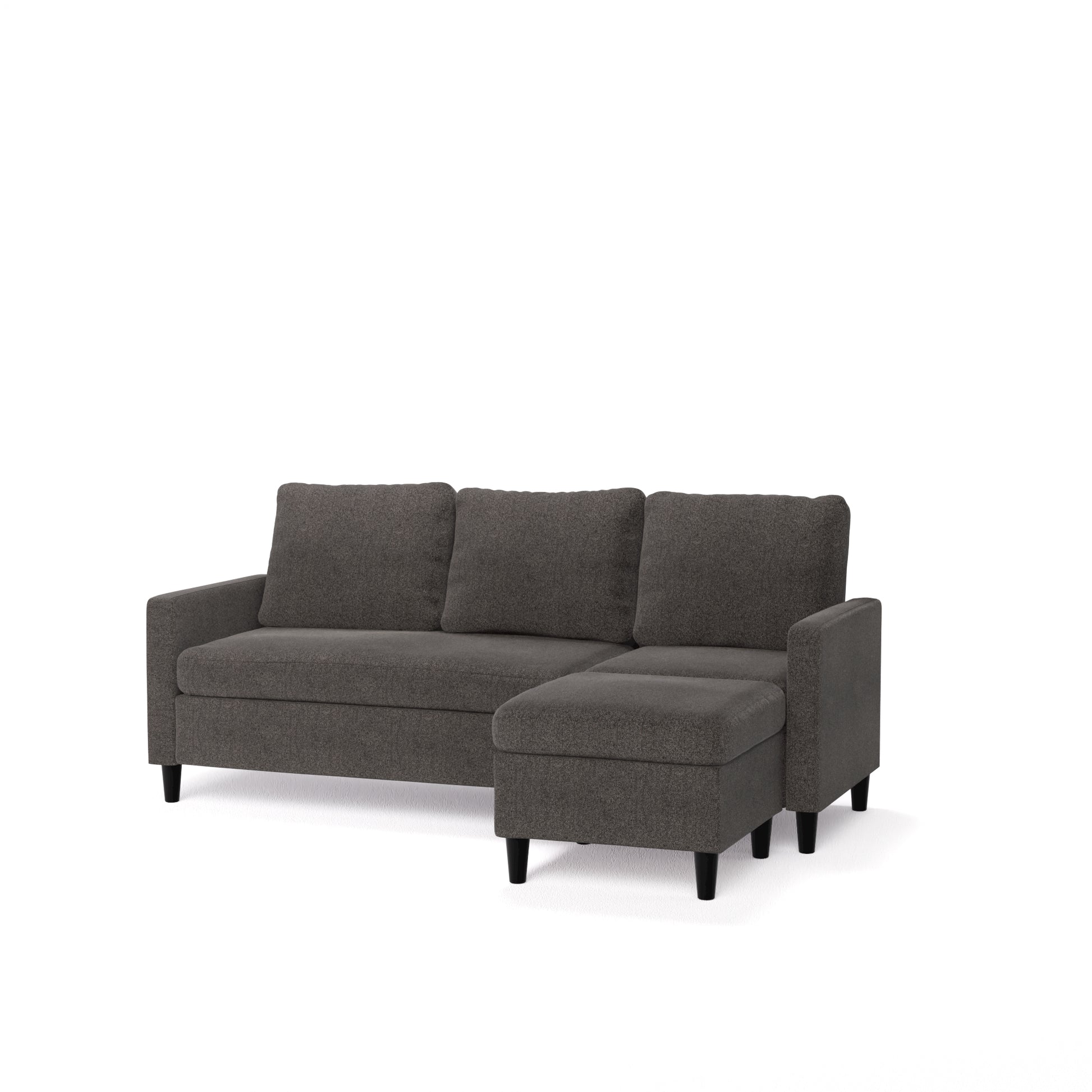 El Hudson es ese seccional cómodo y práctico que siempre queda bien. ¿Quieres estirarte? Usa el puff como chaise y relájate del lado que prefieras. ¿Vienen visitas? El puff funciona como asiento extra o mesa de centro. Así de simple. Su diseño compacto y su color gris oscuro combinan con todo, desde un look moderno hasta algo más clásico. Además, sus cojines de espuma de alta densidad te dan el soporte perfecto para el día a día.